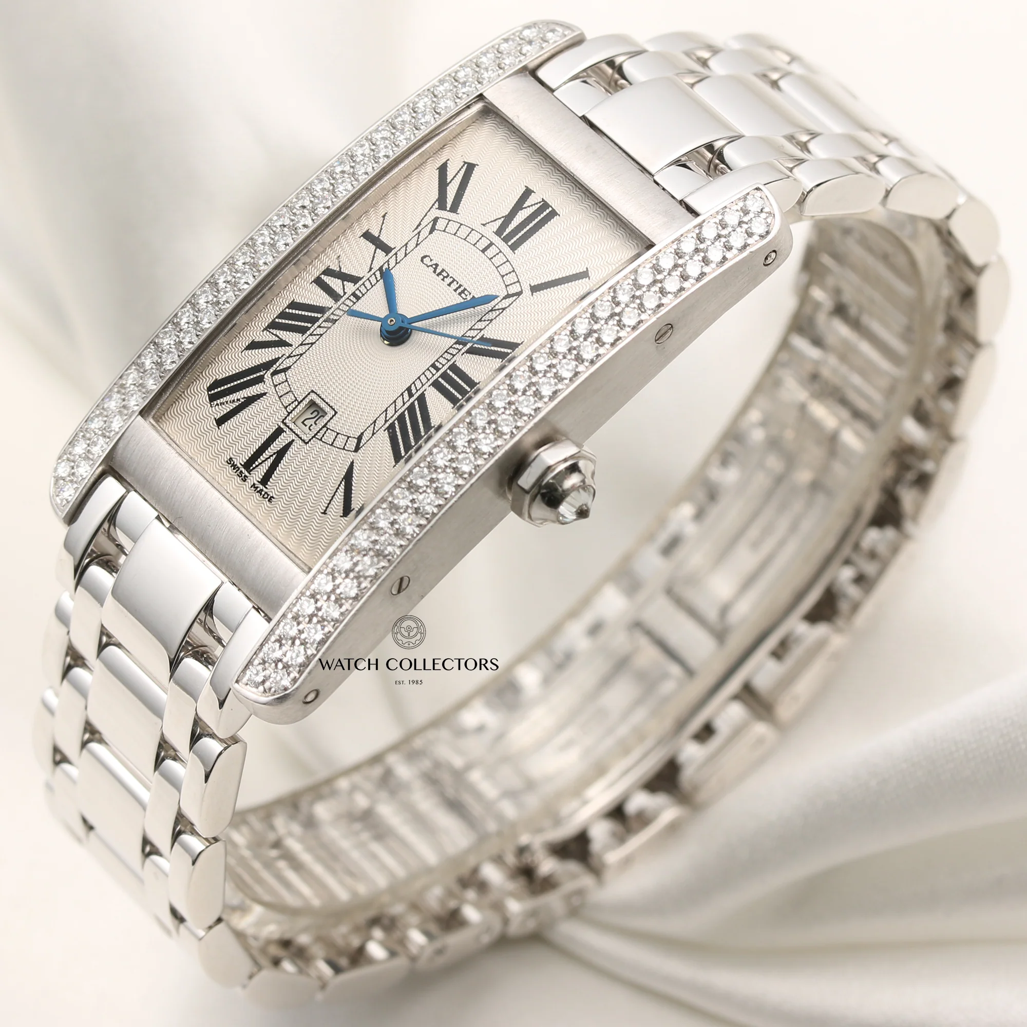 Cartier Tank Americaine Medium 2490 Diamond Bezel 18k White Gold