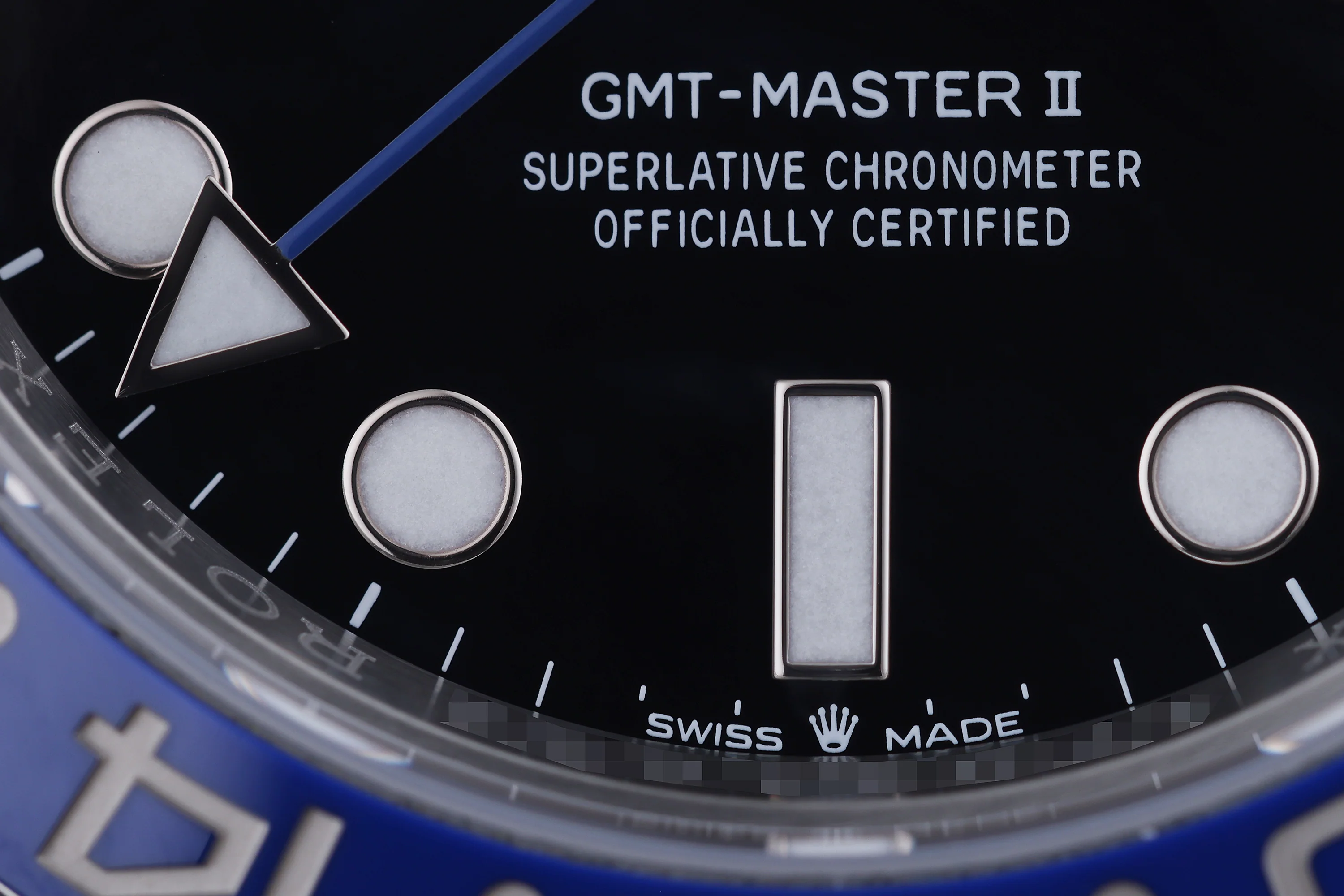 Pre-owned, excellent condition Rolex GMT-Master II "Batgirl" reference 126710BLNR Stainless Steel gents wristwatch. Black dial, a Stainless Steel 40mm case, bezel with a black and blue insert, winder, Jubilee bracelet and deployant clasp, sapphire crystal glass, automatic movement and waterproof up to 100m.