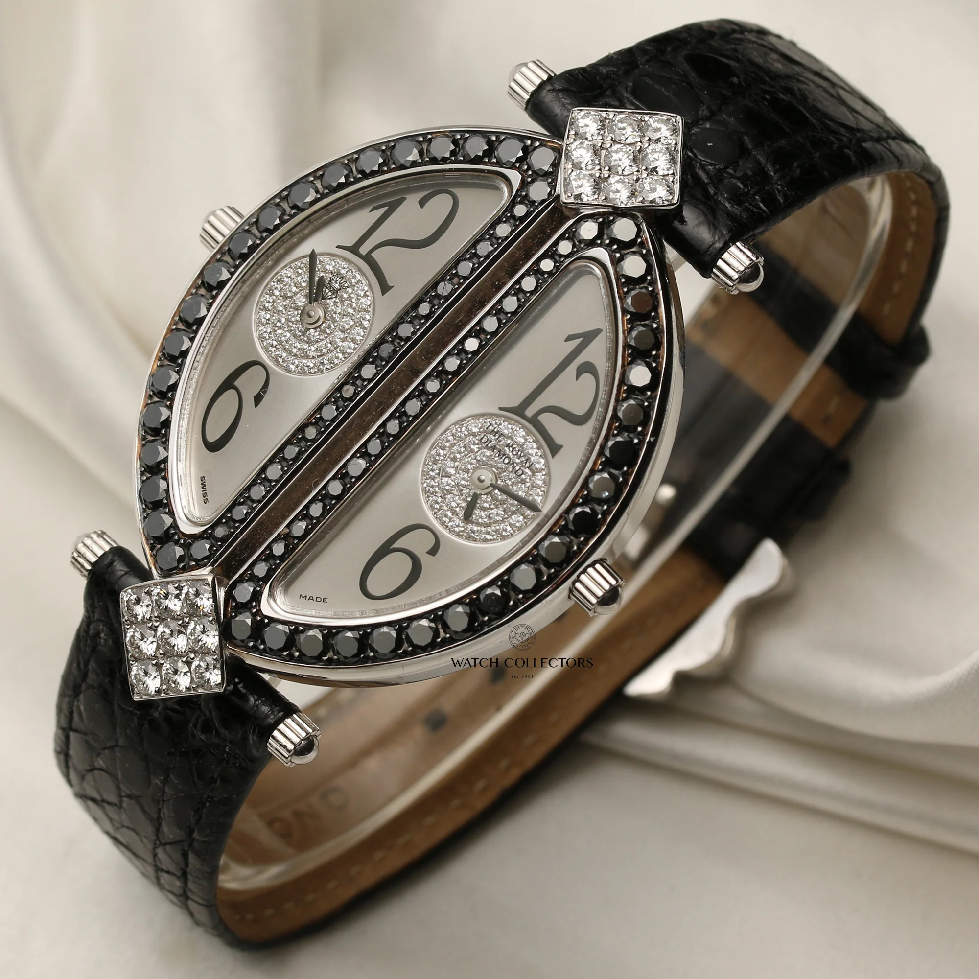 The Royal Diamond Double BA 218 Lady Wristwatch 18k White Gold Black & White Diamonds